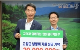 고창군 클릭뉴스2025. 07.17[클릭뉴스]정읍지역 실내인테리어 업체인 주식회사 안정개발 박진근 대표가 고창군에 지난 17일 고향사랑기부금 300만원을 기탁했다. 박진근 대표는 “가까운 이웃이자 제2의 고향인 고창에 큰 발전이 됐으면 좋겠다”라고 밝혔다. 심덕섭 고창군수는 “박진근 대표의 따뜻한 마음에 깊이 감사드린다”며 “소중한 기부금은 고창의 미래에 큰 보탬이 될 것”이라며 “기부자의 뜻에 따라 지역 주민을 위한 다양한 분야에 소중히 활용하겠다”고 밝혔다. 한편, 고향사랑기부제는 올해로 3년 차를 맞았으며, 개인은 자신의 주소지를 제외한 타 지자체에 연간…
