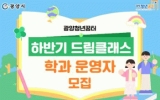 화순군 클릭뉴스2025. 07.17[클릭뉴스]광양시는 청년이 직접 강의를 기획·운영하는 청년 주도형 프로그램 ‘드림클래스’의 하반기 학과 운영자(강사)를 오는 7월 21일부터 8월 1일까지 모집한다고 밝혔다. ‘드림클래스’는 지역 청년들이 자율적으로 강좌를 기획·진행하며 또래 청년들과 지식과 경험을 나누고, 동시에 자신만의 역량을 키울 수 있는 프로그램이다. 올해 상반기에는 수강생 만족도 100%를 기록하며 높은 호응을 얻은 바 있다. 광양시는 상반기 수강생 만족도 조사 결과를 바탕으로, 하반기 모집 분야를 예술(미술, 음악, 공예), 스포츠, 요리, 미디어…