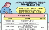 교육 클릭뉴스2025. 07.16[클릭뉴스]광주시교육청학생교육문화회관은 오는 8월 4~8일 ‘2025년도 특별함을 더한 여름방학 프로그램’을 운영한다. 이번 프로그램은 여름방학 동안 교육 공백을 해소하고 초·중학생의 자기주도 학습역량 강화, 건전한 여가문화 형성 등을 지원하기 위해 마련됐다. 이 기간 ▲역사탐험대 출동(한국사) ▲전자드럼 리듬캠프 ▲3D펜 아트존 ▲디즈니 쏭쏭파티 ▲드론 조종사 ▲업사이클링 공예교실 등 등 체험 중심 창의·예술·과학 분야 14개 강좌가 개설돼 하루 2시간씩 운영된다. 특히 올해는 더 많은 학생이 참여할 수 있도록 3개 강좌…