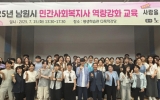 완주군 클릭뉴스2025. 07.15[클릭뉴스]남원시에서는 7월 15일 평생학습관 다목적강당(본관 3층)에서 ‘사람을 살리는 말’이라는 주제로 노수현 강사(㈜쿰 대표)와 민간사회복지사들과 함께 사람을 향한 따뜻한 시선과 실천적 사랑의 표현으로 실천 철학의 방향성을 함께 고민하는 시간을 가졌다. 관내 민간 사회복지사를 대상으로 연 5회에 걸쳐 실시하는 '민간사회복지사 역량강화 교육' 은 민선 8기 공약 중 하나인 ‘사회복지시설 종사자 처우개선’의 실천 과제로 추진되며, 민간 사회복지사의 실무 능력을 강화하고, 지역복지 체계의 안정적 운영 기반을 마련하기 위한 목적…