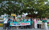 고창군 클릭뉴스2025. 07.14[클릭뉴스]고창군이 지난 10일, 군청 앞 교차로에서 ‘1회용품 없는 날’ 홍보 캠페인 열고, 생활 속 1회용품 사용 저감 실천 확산에 나섰다. 이번 캠페인은 일회용품 사용을 줄이고 다회용품 사용을 생활화를 통해 자원 절약과 탄소배출 저감에 기여하기 위해 추진됐다. 앞서 고창군은 군청사 내 1회용컵 반입금지 실천 운동을 지속적으로 실시하고 다회용컵 사용을 독려 및 인식 개선을 위한 홍보 활동을 추진하고 있다. 고미숙 고창군 환경위생과장은 “1회용품 사용을 줄이기 위해서는 군민 모두가 일상 속 실천을 이어갈 때 지속가능한 자원…