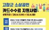 고창군 클릭뉴스2026. 03.31[클릭뉴스] 고창군이 관내 소상공인의 경영 부담 완화를 위해 오는 4월1일부터 예산 소진 시까지 ‘2026년 소상공인 카드수수료 지원사업’을 본격 추진한다고 밝혔다. 이번 사업은 전년도 연매출 3억원 이하 고창군 소재 소상공인을 대상으로 하며, 카드 매출액의 0.4%에 해당하는 카드수수료를 최대 50만원까지 지원한다. 특히, 해당 사업은 도비와 군비를 포함해 업체당 최대 30만원까지 지원되는 가운데, 고창군은 군비 20만원을 추가로 투입해 도내 타 시·군보다 확대된 최대 50만원까지 지원한다. 최근 중동 정세 등 대외 경제 불…