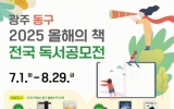 동구 클릭뉴스2025. 06.30[클릭뉴스]광주 동구는 책과 함께 소통하며 행복한 인문도시를 조성하고자 2025 ‘올해의 책’ 전국 독서공모전을 개최한다고 밝혔다. 이번 공모전은 전 국민을 대상으로 하며, 접수 기간은 7월 1일부터 8월 29일까지다. 부문은 ▲‘올해의 책’ 독후감(초등부/중고등부/성인부) ▲함께 읽는 우리(가족·단체) 2개이며, 온라인 공모로 진행된다. 공모전 대상도서는 2025 ‘올해의 책’ 선정도서(10권)이며, 부문별로 유아도서는 ▲바나나가 더 일찍 오려면(정진호) ▲숲속 재봉사의 옷장(최향랑)이며, 어린이 도서는 ▲들개왕(곽영미) ▲요…