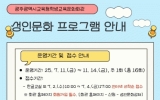 교육 클릭뉴스2025. 06.30[클릭뉴스]광주광역시교육청학생교육문화회관은 지역 주민을 대상으로 ‘2025 성인문화프로그램’ 수강생을 선착순 모집한다. ‘2025 성인문화프로그램’은 시민들의 문화예술 활동 기회를 확대하고, 건강한 여가 문화를 즐길 수 있는 기회를 제공하기 위해 마련됐다. 프로그램은 ▲실버라인댄스 ▲노후자산관리 ▲한글교실 ▲스마트폰 활용법 ▲서예교실 등 5개 강좌로 구성됐으며, 7월 11일~11월 14일 주 1회씩 총 16회 운영된다. 특히 6월 재개관에 따라 새롭게 2개 강좌가 운영된다. 재개관과 함께 문을 연 광주학생스포츠종합지원센터 댄…