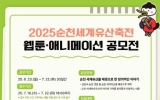 순천시 클릭뉴스2025. 06.25[클릭뉴스]순천시와 순천시 세계유산보존협의회가 오는 9월 12일부터 10월 3일까지 진행되는 '2025순천세계유산축전'을 앞두고, 세계유산의 가치를 알리기 위한 웹툰・애니메이션 공모전을 개최한다. 이번 공모전은 순천이 간직한 세계유산의 매력을 웹툰과 애니메이션이라는 콘텐츠로 표현함으로써, 미래세대와 소통할 수 있는 문화적 가치를 창출하고자 하는데 의의가 있다. 공모 기간은 6월 23일부터 7월 22일까지이며, 작품 접수는 7월 16일부터 22일까지 이메일을 통해 진행된다. 국내 거주 국민이면 누구나 참여할 수 있고 1인당 …
