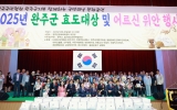 완주군 클릭뉴스2025. 06.23[클릭뉴스]완주군이 주최하고 효사랑실천전북협의회가 주관한 ‘2025년 완주군 효도대상 시상식 및 어르신 위안행사’가 지난 20일 완주군문화체육센터에서 성료됐다. 이날 행사는 경로효친 사상을 계승하고 어르신들의 헌신과 공로를 기리기 위한 자리로, 가족과 이웃을 위해 모범적인 효행을 실천한 주민들에게 표창이 수여됐다. 유희태 완주군수, 유의식 완주군의회 의장, 안우연 효사랑실천전북협의회장, 김영기 대한노인회 완주군지회장 등 주요 인사들도 참석해 수상자들에게 축하와 격려를 전했다. 시상식에서는 ▲효행인 13명 ▲장한 아버지 13명…