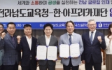 전라남도 클릭뉴스2025. 06.18[클릭뉴스]전라남도교육청(교육감 김대중)은 17일 청사 비즈니스실에서 한·아프리카재단과 업무협약을 체결하고 청소년 국제교류 및 아프리카 이해교육 활성화에 협력하기로 약속했다. 이날 협약식에는 김대중 교육감을 비롯한 전남교육청 관계자, 김영채 이사장을 포함한 한·아프리카재단 관계자, 박철주 전남국제관계대사 등 전남도청 관계자가 참석했다. 이번 협약은 전라남도교육청과 한·아프리카재단 간 유기적 협력체계를 구축하고, 두 기관의 역량과 자원을 활용해 청소년의 세계시민 역량을 강화하고 한-아프리카 간의 상호 이해를 증진하기 위해 추진됐다…