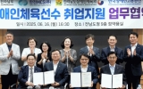 전라남도 클릭뉴스2025. 06.17[클릭뉴스]전라남도는 16일 도청 정약용실에서 한전MCS(주)와 장애인 체육선수 취업 지원 업무협약을 하고, 연내 30명 내외 신규 채용 등 장애인 고용증진을 위한 상호 협력을 다짐했다. 협약식에는 명창환 전남도 행정부지사, 정성진 한전MCS 대표이사, 이종성 한국장애인고용공단 이사장 등 15명이 참석했다. 주요 협약 내용은 ▲장애인 체육선수 고용지원을 통한 일자리 창출 ▲장애인 체육선수 고용 증진과 활동 지원 ▲장애인 체육선수 발굴과 대회 참가 지원 등이다. 전남지역 장애인 체육인의 안정적 선수활동 지원을 위해 적극 협력…