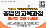 광주광역시 클릭뉴스2025. 06.08[클릭뉴스]광주광역시 농업기술센터는 현장 목소리를 반영한 농업교육 설계를 위해 오는 30일까지 ‘2026년도 농업인 교육과정 온·오프라인 수요조사’를 실시한다. 이번 조사는 농업인의 실제 요구를 반영한 교육과정을 개발하고, 지역 실정에 맞는 체계적 교육체계를 구축하기 위한 기초자료를 확보하기 위해 진행된다. 조사 기간은 5월28일부터 6월30일까지 약 한 달간이다. 광주지역 (예비)농업인과 농업교육에 관심 있는 시민 누구나 참여 가능하다. 참여는 온라인과 오프라인을 병행해 이뤄진다. 온라인은 광주농업기술센터 누리집 알림창·배…