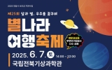 완주군 클릭뉴스2025. 06.02[클릭뉴스]우주의 경이로움과 과학의 흥미를 동시에 느낄 수 있는 ‘제25회 별나라 여행축제’가 개최된다. 정읍시는 오는 6월 7일 오후 2시부터 밤 10시까지 국립전북기상과학관에서 지역 대표 과학문화축제인 ‘별나라 여행축제’를 연다고 밝혔다. 올해로 25회를 맞이한 이 축제는 정읍천문연구회, 전주기상지청, 국립전북기상과학관, 혜성(정주고등학교 과학동아리)이 공동 주최하고, 시와 정읍교육지원청, 정주고등학교, 대한적십자사 전북특별자치도지사가 후원한다. ‘달과 별, 우주를 꿈꾸며’를 주제로 열리는 이번 행사는 매년 약 2000여…