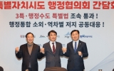 전라남도 클릭뉴스2026. 02.08[클릭뉴스]전북특별자치도를 비롯한 4개 특별자치시·도가 8일 긴급 회동을 갖고 '3특·행정수도 특별법' 조속 통과를 촉구하며 한목소리를 냈다. 김관영 전북도지사, 김진태 강원도지사, 최민호 세종시장, 고용균 제주 부지사는 이날 콘래드서울호텔에서 대한민국특별자치시도 행정협의회 간담회를 열고 향후 공동 대응방안을 논의했다. 이번 긴급 회동은 최근 국회에서 '행정통합 특별법' 논의가 급물살을 타면서 먼저 출발한 특별자치시·도 법안 심사가 지연되고, 정책적으로 소외될 수 있다는 우려가 커지면서 성사됐다. 김관영 전북도지사는 "광역행정…