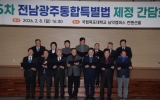 전라남도 클릭뉴스2026. 02.09[클릭뉴스]강기정 광주광역시장은 8일 ‘전남광주통합특별시 설치 특별법’ 제정과 관련해 중앙부처의 전향적 결단을 강하게 촉구했다. 강기정 시장은 이날 오후 목포대학교 남악캠퍼스에서 열린 ‘전남광주통합특별시 설치를 위한 특별법안 논의를 위한 제5차 시도지사-지역 국회의원 간담회’에 참석해 “지난 6일 중앙부처가 특별법 386개 조문 가운데 119개 조문을 온전히 수용하기 어렵다는 입장을 확인했다”며 “한 달 동안 숨가쁘게 마련한 특별법은 시·도민의 오랜 염원이 담긴 법이자 ‘5극3특’을 통해 지방주도 성장의 대한민국을 만들겠다는 대…