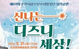 순천시 클릭뉴스2025. 05.27[클릭뉴스]순천시는 오는 31일 오후 5시, 순천시 문화예술회관 대극장에서 순천시립소년소녀합창단의 제69회 정기연주회를 개최한다고 밝혔다. 이번 연주회는 ‘신나는 디즈니 세상!’을 주제로, 남녀노소 누구나 사랑하는 디즈니 애니메이션 속 주제곡을 선보이며 지역 출신 성악가가 참여하여 관객들에게 특별한 감동과 즐거움을 선사할 예정이다. 공연은 순천시립소년소녀합창단(지휘 박호진)이 '꿈꾸는 사람', '함께' 등의 합창곡과 ‘백설공주’, ‘피노키오’ 등 디즈니 애니메이션의 수록곡들을 뮤지컬로 만들어 생동감 넘치는 화음으로 들려줄 계획…