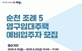 순천시 클릭뉴스2025. 05.27[클릭뉴스]순천시는 주거 취약계층의 주거복지 수요 증가에 대응하기 위해 ‘순천조례5차 영구임대주택’ 예비입주자 180세대를 모집한다. 이번 영구임대주택모집은 조례주공5차 내 501~504동을 대상으로 하며, 공급형별 26.37㎡ 150세대, 31.32㎡ 30세대로 예비입주자 180세대를 모집한다. 모집일정은 6월 16일부터 6월 20일까지 5일간 주민등록상 주소지 관할 읍·면·동 행정복지센터에서 방문 접수 받는다. 신청자격은 공고일 기준 성년자(만 19세 이상)로, 무주택세대구성원이어야 하며, 입주자 모집 공고문에 명시된…