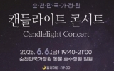 남원시 클릭뉴스2025. 05.26[클릭뉴스]순천시는 오는 6월 6일 저녁 7시 40분, 순천만국가정원 동문 호수정원에서 야외 클래식 콘서트 『순천만국가정원×캔들라이트』를 개최한다고 밝혔다. 『별가든 밤 – 치유와 위로』를 부제로 열리는 이번 공연은 국가정원의 대표 명소인 봉화언덕과 호수정원을 배경으로, 초여름 밤의 정취와 음악이 어우러지는 고품격 야간 문화예술 콘텐츠를 통해 일상에 지친 시민과 관람객에게 깊은 위로와 휴식을 전할 예정이다. 무대에는 피아노, 바이올린, 비올라, 첼로로 구성된 클래식 5중주 ‘앙상블 톤즈’가 클래식 명곡은 물론 영화 음악, 지브리…