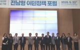 전라남도 클릭뉴스2025. 05.22[클릭뉴스]전라남도는 22일 목포대서 제18회 세계인의 날 기념 ‘지방소멸 위기 극복을 위한 전남형 이민정책 방향’ 포럼을 열어 산업수요에 맞는 외국인력 유치·육성과 이들의 안정적 정착을 돕는 정주형 이민정책 방안을 모색했다. 포럼엔 외국인 유입 첫 관문을 담당하는 광주 출입국·외국인사무소 등 유관기관, 학계, 전문가, 도민 등 150여 명이 참석했다. 국내 이민정책 싱크탱크인 법무부 산하 이민정책연구원과 전남연구원에서 전남의 이민정책 주요 과제와 산업인력 수요 전망 등을 발표하고, 김경학 전남대 글로벌 디아스포라연구소장을 좌장…