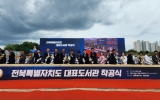 전라북도 클릭뉴스2025. 05.21[클릭뉴스]전북특별자치도의 지식과 문화 중심이 될 ‘대표도서관’이 마침내 첫 삽을 떴다. 도는 21일 전주시 덕진구 장동 일원에서 착공식을 갖고, 2027년 개관을 목표로 본격적인 공사에 돌입했다. 대표도서관은 총사업비 600억 원을 투입해 지하 1층, 지상 4층 규모(연면적 10,517㎡)로 조성되며, 약 20만 권의 장서를 보관할 수 있는 공동보존서고와 다양한 연령층을 아우르는 맞춤형 자료실, 전시·홍보 공간, 야외정원 등이 들어선다. 부지면적은 축구장 4개 크기에 해당하는 2만9,400㎡에 달한다. 전북자치도는 이곳…