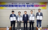 전라북도 클릭뉴스2025. 05.19[클릭뉴스]군산시는 19일 지역경제를 선도할 군산형 유망 강소기업 3개 사와 강소기업 1개 사를 신규 선정하고 인증서 수여식을 개최했다. ‘군산형 유망 강소기업 육성 지원 사업’은 성장 잠재력이 높은 중소기업을 발굴하여 세계적인 기업으로의 도약을 지원하는 군산시의 대표 산업육성 정책이다. 올해는 3월부터 접수를 시작해 서류심사, 현장평가, 발표평가를 거처 최종 4개 기업이 선정됐다. 이번에 강소기업으로 선정된 명일잭업해양(주)은 1998년 설립이래 잭업(JackUp)바지선을 전문으로 설계․제작․판매하는 해양 특수 구조물 전문…