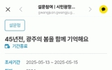 광주광역시 클릭뉴스2025. 05.16[클릭뉴스]제45주년 5·18민주화운동을 맞아 광주시가 온라인 시민소통 플랫폼 ‘광주온(ON)’에서 진행한 특별이벤트에 시민들의 관심과 호응이 이어졌다. 광주광역시는 지난 13일부터 15일까지 광주온에서 ‘45년 전, 광주의 봄을 함께 기억해요’를 주제로 퀴즈 풀기 및 댓글 참여 이벤트를 진행, 총 5100여명의 시민이 참여했다. 시민들은 댓글을 통해 “5·18정신을 잊지 말고 기억하자”, “후손에게 전해야 할 역사” 등의 메시지부터 “초등학교 때 본 무섭고 슬픈 기억”과 같은 개인적 경험까지 다양한 소회를 공유했다. 또 “기…
