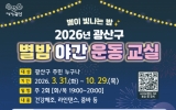 광산구 클릭뉴스2026. 03.26[클릭뉴스]광주 광산구가 건강한 신체활동 환경을 조성하고 지역 주민들이 규칙적인 운동습관 형성을 위해 ‘별밤야간운동교실’을 운영한다. 별밤야간운동교실은 남녀노소 누구나 무료로 참여할 수 있는 건강 체조로, 광산구 8개 공원에서 화요일과 목요일 주 2회 오후 7시부터 8시까지 진행한다. 운동교실은 31일부터 10월 29일까지 △첨단쌍암공원 △경암근린공원 △황룡친수공원 △신창역사문화공원 △운남근린공원 △첨단전천후게이트볼장 야외 △광주광역시인재교육원 △풍영정천변길 공원에서 운영한다. 프로그램은 △생활체조 △라인댄스 △에어로빅 등으로 …