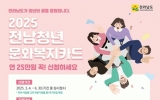 여수시 클릭뉴스2025. 05.13[클릭뉴스]여수시는 전남청년 문화복지카드 지원사업 대상자를 오는 6월 30일까지 상시 모집 중이라고 밝혔다. ‘전남청년 문화복지카드 지원사업’은 지역 청년에게 연 25만 원의 문화복지비를 지원하는 사업으로, 청년의 문화 향유 기회를 넓히기 위해 지난 2022년부터 시행됐다. 지원 대상은 2023년 3월 4일 이전부터 전남 도내에 2년 이상 주소를 두고 있는 19~28세 청년(1997년~2006년 출생자)이며, 자격요건을 충족하는 청년은 매년 신청해야 한다. 단, 복지포인트(카드)를 지급받는 공공기관 근무자, 학교 밖 청소년 교…
