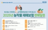 남원시 클릭뉴스2025. 05.12[클릭뉴스] 남원시은 최근 잦은 기후변화에 따른 농작물 피해를 보상하여 농가의 소득 및 경영안정을 도모하고자 농작물 재해보험에 약 40억 원의 예산을 수립하여 지원하고 있다. 농작물 재해보험은 농업인들이 태풍, 우박, 동상해(언피해), 일소(햇볕 뎀) 등 다양한 자연재해로부터 농작물을 보호할 수 있는 제도이다. 가입 대상 농작물은 76종이며 보험에 가입할 수 있는 품목을 재배하더라도 품목별 파종 시기와 수확시기에 따라 가입 시기가 다르므로 재배작물의 가입 시기를 꼭 확인해야 한다. 가까운 농축협이나 원예농협을 통해 가입…