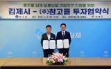 김제시 클릭뉴스2025. 05.09[클릭뉴스]김제시가 지난 8일 논 콩 생산의 안정화와 농가소득 증대를 위해 ㈜참고을과 투자협약을 체결했다. (주)참고을은 참기름과 장류 등을 생산하는 김제의 대표적인 향토기업으로 이번 협약을 통해 『'콩愛뜰' 김제 논콩산업 거점지구』내에 80억 원 정도를 투자해 콩 식품관련 생산라인을 구축할 예정이다. 시는 식량생산의 보고(寶庫)이며 정부의 전략작물 육성정책에 부응해 논 콩 생산을 지속적으로 확대한 결과 지난 2024년 기준 김제시 논 콩 재배면적이 5,981ha로 전국 논 콩 재배면적의 약 26%(전국 1위)를 차지하며 식량 …
