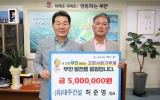 부안군 클릭뉴스2025. 05.09[클릭뉴스]남원시 소재 (유)대주건설 허준영 대표가 지난 8일 부안군에 고향사랑기부금 500만 원을 기탁하며 고액기부를 실천했다. 허 대표는 부안군의 지역 발전과 주민 복지를 응원하는 마음으로 이번 기부를 결정했으며, 고향사랑기부제의 순수한 취지에 깊이 공감해 흔쾌히 동참했다. 허준영 대표는 “지역사회를 위한 좋은 제도에 함께할 수 있어 뜻깊다”며 “앞으로도 다양한 방식으로 지역과 상생할 수 있도록 노력하겠다”고 말했다. 권익현 부안군수는 “기부를 통해 따뜻한 마음을 전해주신 허준영 대표님께 진심으로 감사드린다”며 “기탁해주신…