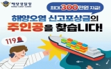 완도군 클릭뉴스2025. 05.08[클릭뉴스] 완도해양경찰서가 ‘해양오염 신고포상금 제도’를 적극 운영하며 해양오염 사각지대 해소에 나섰다. 해양 오염 행위에 대한 경각심을 높이고 국민의 자발적인 감시 활동을 통해 오염을 사전에 차단하려는 목적으로 운영하는 해양오염신고포상금제도는 선박이나 해양시설 등에서 유해물질을 불법으로 바다에 배출하는 행위를 국민이 직접 신고해 사실로 확인 될 경우 일정 금액의 포상금을 지급하는 제도이다. 완도해경에 따르면, 누구든지 바다에 오염물질을 버리는 행위를 목격하거나 오염물질을 발견한 경우 전화신고ㆍ가까운 경찰서나 파출소로 방문신고…