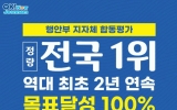 고흥군 클릭뉴스2025. 05.08[클릭뉴스]전라남도는 행정안전부의 2025년(2024년 실적) 지자체 합동평가 결과 정량지표에서 2년 연속 100%로 1위를 달성했다고 밝혔다. 이는 지난해에 이어 전국 17개 시·도 가운데 유일하게 정량지표 100% 달성한 것이다. 2년 연속 100%는 앞으로도 깨지기 어려울 것이라는 분석이다. 자자체 합동평가는 행정안전부를 비롯한 중앙행정기관이 공동으로 전국 17개 시·도에 대해 국가위임사무와 국고보조사업, 국가 주요 시책 추진성과 등을 대상으로 이뤄지는 지방자치단체 종합평가다. 올해는 정량지표(목표달성도 평가) 97개…