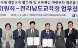 완도군 클릭뉴스2025. 05.02[클릭뉴스]전라남도교육청이 미래세대의 청렴 의식을 높이고, 교육현장에서 청렴 문화를 확산하기 위해 국민권익위원회와 손을 맞잡았다. 양 기관은 5월 2일 국민권익위 세종청사에서‘미래세대 청렴교육 및 청렴 문화 확산을 위한 업무협약(MOU)’을 체결하고, 청렴교육 관련 제도 개선과 실천 방안 공동 추진에 합의했다. 이번 협약에 따라 ▲ 초·중·고 학생 대상 청렴교육 제도 개선 ▲ 참여형 교육 프로그램 확대 ▲ 교육재정의 건전성 강화 ▲ 부패 취약분야 개선 등을 함께 추진할 계획이다. 특히 부정수급 예방을 위한 정보 공유, 합동점…