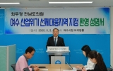 화순군 클릭뉴스2025. 05.02[클릭뉴스]전남도의회 안전건설소방위원회 최무경 의원(더불어민주당, 여수4)은 5월 2일 여수시청 브리핑룸에서 열린 성명서 발표에서, 산업통상자원부가 여수시를 ‘산업위기 선제대응지역’으로 공식 지정한 것에 대해 “여수시민과 전남도민의 오랜 염원이 이뤄진 뜻깊은 결실”이라며 진심 어린 환영의 뜻을 밝혔다. 이번 지정에 따라 여수시는 2025년 5월 1일부터 2027년 4월 30일까지 2년간 산업위기 선제대응지역으로 지정되며, 정부로부터 긴급경영안정자금, 지방투자촉진보조금, 정책금융 우대, 고용안정 지원 등 종합적인 지원을 받게 된다.…