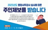 나주시 클릭뉴스2025. 05.01[클릭뉴스]광주 북구의회가 오는 6월 예정된 2025년도 행정사무감사를 앞두고 5월 1일부터 31일까지 한 달간 주민제보를 받는다. 제보 대상은 ▴업무와 관련된 위법·부당 사례 ▴구정 주요 시책 및 사업에 대한 개선‧건의 사항 ▴보조금 부당 수령 및 예산낭비 사례 등이며 제보된 내용은 행정사무감사 참고자료로 활용된다. 다만, 사생활 침해 우려가 있는 사항, 인신공격 또는 허위·비방 우려가 있는 사항, 단순 민원 해결 요청사항, 재판 또는 수사 중인 사안, 익명 제보 등은 제외된다. 제보는 북구의회 홈페이지, 방문‧우편(북구 우…