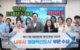 장성군 클릭뉴스2025. 05.01[클릭뉴스]전라남도 나주시가 기획재정부, 행정안전부 등 중앙부처에서 후원하는 ‘대한민국 창조경영 2025’ 시상식에서 행정혁신도시 부문 대상 수상 영예를 안았다. 1일 나주시에 따르면 창조경영 2025는 창의적인 혁신과 도전을 이룬 지자체와 기업을 선정해 시상한다. 중앙일보 주최로 지난 4월 29일 서울 중구더플라자호텔에서 열렸다. 시는 민선 8기 시정 목표인 ‘살기 좋은 행복 나주, 앞서가는 으뜸나주’를 목표로 시민 중심의 행정혁신을 지속해온 점이 높은 평가를 받았다. 새로운 영산강 르네상스와 500만 관광 시대 도…
