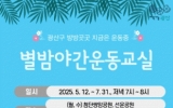 문화 클릭뉴스2025. 05.01[클릭뉴스]광주 광산구가 시민 누구나 저녁 틈새 시간 함께 할 수 있는 무료 건강 프로그램 ‘별밤야간운동교실’을 운영한다. 운동할 시간이 부족한 시민에게 건강한 신체활동 기회를 제공하기 위해 마련한 프로그램이다. 5월 12일부터 7월 말까지 첨단 쌍암근린공원, 선운근린공원, 경암근린공원, 황룡친수공원, 임방울어린이공원 등 광산구 5개 공원에서 주 2회 저녁 7시부터 8시까지 운영한다. 이 기간 월요일, 수요일엔 쌍암‧선운 2개 공원에서, 화요일과 목요일은 경암‧황룡‧임방울어린이 3개 공원에서 운동 교실이 열린다. 전문 강사와…