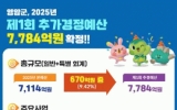 김제시 클릭뉴스2025. 05.01[클릭뉴스]영암군이 4/30일 영암군의회 의결을 거쳐 7,784억원 규모의 ‘2025년 제1회 추가경정예산’을 확정했다. 이는 올해 본예산 7,114억원의 9.42%인 670억원이 증액된 수치로, 일반회계는 8.66% 561억원 증가한 7,043억원, 특별회계는 17.21% 109억원 증가한 742억원이다. 영암군은 고물가·고금리·사회재난 등으로 어려움을 겪고 있는 영암군민의 생활 안정, 지역경제 활성화 등 민생경제 회복을 최우선 과제로 추경을 편성했다. 특히, 정부 긴축재정 상황에서 건전재정을 기조로 부족한 재원의 효율적…