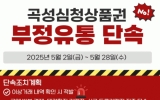 화순군 클릭뉴스2025. 04.30[클릭뉴스] 곡성군이 오는 5월 7일부터 3주간 2025년 상반기 곡성심청상품권 부정유통에 대한 단속을 추진한다고 전했다. 단속 대상 기간은 2024년 11월부터 2025년 5월까지다. 이 기간 중 판매된 상품권은 약 157억 원으로, 특히 올해 상반기에는 민생활력지원금 54억 원, 농어민수당 41억 원 등 95억 원의 정책 수당이 곡성심청상품권으로 지급됐다. 상품권 유통량이 급증함에 따라 건전한 유통 질서를 확립하기 위한 집중 점검을 추진하겠다는 취지이다. 대표적인 부정유통 사례로는 ▲상품권깡(가맹점에서 물품을 판…