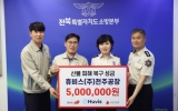 광산구 클릭뉴스2025. 04.29[클릭뉴스]전북특별자치도소방본부는 29일 도청 3층 소방본부장실에서 ㈜휴비스 전주공장의 정읍 금동마을 산불 피해 복구 성금 500만 원 기탁식을 진행했다. 이번 성금은 지난 3월 25일 금동마을에서 발생한 대형 산불로 삶의 터전을 잃은 주민들의 빠른 일상 회복을 지원하기 위해 마련됐으며, 사회복지공동모금회를 통해 전달될 예정이다. 기탁식에는 ㈜휴비스 전주공장 김준호 안전팀장과 김선호 안전파트장, 이오숙 본부장을 비롯해 권기현 119대응과장, 조정훈 화재조사팀장이 참석해 뜻을 함께했다. ㈜휴비스 전주공장은 이번 성금을 통해 피해…