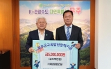 무주군 클릭뉴스2025. 04.22[클릭뉴스]지난 22일 ㈜대경종합건설에서 (재)무주군교육발전장학재단에 장학금 5백만 원을 기탁했다. 이날 무주군을 찾은 하헌경 대표는 “무주를 넘어 우리나라를 이끌어 나갈 미래 인재를 육성하겠다는 마음으로 장학금을 기탁하게 됐다”라며 “아이들이 좋은 학습 환경에서 학업에 전념할 수 있도록 잘 활용해 주길 바란다”라고 말했다. ㈜대경종합건설은 무주군 무풍면에 위치한 토목‧건축 종합건설회사로, 2024년에도 무풍면 주민들을 위한 기부 활동에도 동참하는 등 지역과 주민을 위한 활동에 앞장서고 있다.