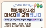 영암군 클릭뉴스2025. 04.21[클릭뉴스]영암군이 4/21~5/2일 ‘2025년 영암군 청년 희망 디딤돌 통장사업’ 참여자를 모집한다. 지역에서 일하는 청년들의 자산 형성을 지원하는 이 사업은, 청년이 매월 10만원을 적립하면, 영암군이 여기에 10만원을 더해 예금 만기인 3년 후 720만원과 이자를 받을 수 있게 한다. 영암군민인 18~49세 청년 누구나 참여할 수 있는 이 사업은, ‘전남형’ 36명과 ‘영암형’ 55명 모집으로 구성돼 있고, 중복 신청할 수 없어 사전에 신청 자격을 꼼꼼히 살펴야 한다. 특히, 전남형은 사업체를 운영하는 청년도 참여할…