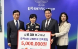 [클릭뉴스]전북특별자치도소방본부는 17일 도청 3층 소방본부장실에서 한국소방시설협회가 마련한 정읍시 소성면 금동마을 산불 피해 주민들을 위한 복구 성금 500만 원의 기탁식을 가졌다. 이번 성금은 지난 3월 25일 정읍시 소성면 금동마을에서 발생한 대형 산불로 피해를 입은 주민들의 일상 회복과 복구 지원을 위해 마련된 것으로, 한국소방시설협회 임원들의 자발적인 모금을 통해 조성됐으며, 사회복지공동모금회를 통해 금동마을 주민들에게 전달될 예정이다. 이날 기탁식에는 ▲한국소방시설협회 박현석 중앙회장, 백부현 전북도회장, 박해영·권광…