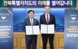 김제시 클릭뉴스2025. 04.15[클릭뉴스]전북특별자치도는 15일 주한네덜란드대사관과 대체단백질 분야의 글로벌 협력 강화를 위한 업무협약(MOU)을 체결했다고 밝혔다. 이번 협약은 배양육, 식물성 단백질, 차세대 단백질 원료 등 ‘푸드테크 대체단백질’ 분야의 기술 교류 및 공동 연구 확대를 골자로 하고 있다. 김관영 전북도지사는 이날 도청 집무실에서 페이터 반 더 플리트(Peter van der Vliet) 주한네덜란드 대사를 접견, 푸드테크 대체단백질 분야 산학연 협력 확대와 기술 투자에 대한 관심과 지원을 요청했다. 이번 방문은 페이터 대사가 2023년 …