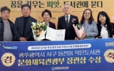 정읍시 클릭뉴스2025. 04.14[클릭뉴스]광주광역시 서구 동천동 작은도서관이 도서관 운영 활성화 분야에서 우수기관으로 선정돼 문화체육관광부 장관상을 수상했다. 서구는 지난 12일 서울 국립중앙도서관에서 열린 ‘2025 도서관의 날’ 기념식에서 도서관 서비스 향상 및 독서문화 확산 등에 기여한 공로를 인정받아 문체부 장관 표창을 받았다고 14일 밝혔다. 동천동 작은도서관은 동 BI(Brand Identity) ‘다독다독 책마을’을 활용한 독서 인프라 조성에 앞장서고 있다. 관내 출생 아동에게 생애 첫 책을 선물하는 ‘내 생애 첫 책 전달사업’, 동천동만…