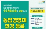 문화 클릭뉴스2025. 04.09[클릭뉴스]국립농산물품질관리원은 농업경영체 정보의 정확도를 높이기 위해 4월부터 6월까지 벼·대파 ·배·포도 등 하계작물 정기 변경신고 기간을 운영한다. 농업경영체 등록 농업인은 공익직불 등 농업 관련 융자·보조 사업 지원혜택을 받는 대신 농어업경영체법 제4조에 따라 변경등록의 의무가 주어진다. 이는 정확한 농업경영체 등록정보를 토대로 정책지원을 추진하고 농산물 수급 등 정책 기초자료로 활용하는 등 농정 발전의 선순환 구조를 만들기 위한 방안이다. 이에 농관원은 올해부터 정기 변경신고제를 도입·운영하고 있다. …