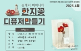 익산시 클릭뉴스2025. 04.09[클릭뉴스]익산시 마한박물관이 '문화가 있는 날'을 맞아 '한지꽃 디퓨저 만들기' 강좌를 운영한다고 9일 밝혔다. 이번 체험은 오는 23일 오전 10시부터 12시까지 2시간 동안 마한박물관 교육체험실에서 진행된다. 조선시대 궁중 장식 문화인 '궁중상화(宮中床花)'를 주제로 전통 한지꽃을 직접 만들어 디퓨저와 결합하는 내용으로 구성된다. 체험은 유료로 진행되며 선착순 20명을 모집한다. 수강 신청은 오는 10일부터 마한박물관으로 문의하면 된다. 마한박물관 관계자는 "한지꽃의 아름다움과 전통 문화의 가치를 느끼고, 일상 …