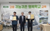 고흥군 클릭뉴스2026. 03.23[클릭뉴스]고흥군은 지난 20일 남양면에 위치한 귀농귀촌 행복학교에서 제31기 귀농귀촌 행복학교 수료식을 개최했다고 밝혔다. 지난 3월 16일부터 20일까지 5일간 진행된 이번 교육에는 26명이 참여해 이 중 25명이 수료증을 받았다. 이번 교육은 귀농귀촌을 준비하는 이들의 첫걸음을 돕기 위해 ▲인공지능(AI)과 함께하는 귀농귀촌 비즈니스 전략 ▲농작업 안전재해 예방 ▲귀농귀촌 갈등관리 ▲재무관리 전략 ▲치유농업의 이해 등 실질적인 내용으로 구성돼 교육생들로부터 큰 호응을 얻었다. 31기 과정에 참여한 한 교육생은 “귀농귀촌을…