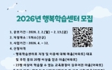 여수시 클릭뉴스2026. 02.02[클릭뉴스]여수시는 주민 생활권 중심의 평생학습 기회를 확대하기 위해 '2026년 읍·면·동 행복학습센터' 신규 지정 사업에 참여할 마을(아파트)을 모집한다고 밝혔다. 행복학습센터는 읍·면·동 단위에서 주민의 학습 수요를 반영한 평생학습 프로그램을 운영하는 생활 밀착형 학습공간으로 시민 누구나 가까운 곳에서 배움에 참여할 수 있도록 지원하는 사업이다. 이번 공모를 통해 총 5개소를 신규 지정하며 모집 기간은 2월 2일부터 2월 13일까지다. 신청 대상은 행복학습센터 지정·이용에 대해 마을(아파트) 대표와 주민 20명 이상 동의…