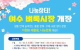 문화 클릭뉴스2025. 04.03[클릭뉴스]여수시는 오는 5일 거북선공원 잔디광장에서 올해 첫 벼룩시장을 개장한다고 3일 밝혔다. 여수 벼룩시장은 가정에서 잠자고 있는 물건을 자유롭게 판매·교환하고 행사 후에는 물품과 수익금을 자율적으로 기부하는 자원 순환 실천 행사로, 행사 취지에 맞지 않는 새 상품이나 음식물, 의약품 등은 제외된다. 7~8월 혹서기를 제외하고 11월까지 총 6회, 매월 첫 번째 토요일에 열리며 오후 1시부터 4시까지 진행된다. 이번 벼룩시장에는 △재활용품을 활용한 체험 △향기 테라피 체험 △누룽지 초콜릿 만들기 △곤약젤리 만들기 △모종 …