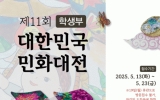 강진군 클릭뉴스2025. 04.03[클릭뉴스]국내 최대 규모의 민화 전문 공립박물관인 한국민화뮤지엄이 제11회 대한민국민화대전을 개최한다. 해당 공모전은 학생부(초/중등부)와 일반부로 나눠 진행하며, 학생부는 5월 13일부터 23일까지, 일반부는 6월 10일부터 27일까지 접수할 수 있다. 대한민국민화대전은 우리 고유의 전통 예술인 민화의 계승과 발전, 그리고 세계화를 목표로 강진군 주최, 문화체육관광부 및 전라남도 후원, 그리고 한국민화뮤지엄 주관으로 열리는 전국 규모의 연례 공모전이다. 지난 2024년 10주년을 맞은 대한민국민화대전은 본관인 조선민화박…