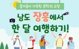 장흥군 클릭뉴스2025. 03.28[클릭뉴스]장흥군이 3월 26일 부터 4월 11일까지 ‘장흥에서 한 달 여행하기’참가자를 모집한다고 밝혔다. ‘장흥에서 한 달 여행하기’사업은 장기 체류 여행자에게 여행경비를 지원하고 여행자는 개인 SNS 등을 통해 장흥 여행을 홍보하는 사업이다. 공고일 기준 광주·전남 외 주소지를 둔 관광객 중 장흥 여행을 희망하는 누구나 신청 가능하다. 참가자는 최소 7일에서 최대 30일 동안 전남 22개시군을 여행하면서 여행후기 작성, 만족도 조사 등 여행과제를 수행해야 한다. 여행을 하며 모든 과제 수행시 숙박비 5만원, 식비 4만원…